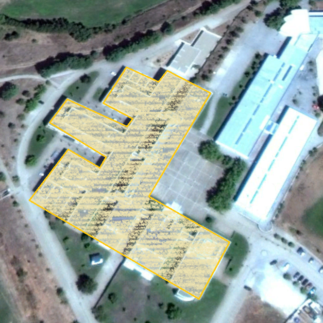 Service building, dedicated to education, located in the district of Bragança. The building has a complex geometry, being essentially composed by three corps, which communicates between them through horizontal corridors. It’s organized, mostly, in three floors; having 12 320 m2 of useful areas and even 400 m2 of unheated area (warehouse, storage areas, thermal central). It’s a building with permanently using, with more utilization during the day period, between 09:00h and 20:00h. Nevertheless, during the school time, the utilization could be initiated at 8h30 and end between 22h00 and 23h00. At Saturdays, the school works with classes between 9h30 and 13h00. Additionally and during the day, are developed some events, including weekends. This building uses electrical energy, in almost every sectors and equipments, and natural gas for heating the environment and sanitary waters. In the inspection and analyze of the building was made an inventory of the constructive solutions of the envelope of the building, just as well the evaluation of their constructive weakness/pathologies. Was even evaluated the quality of the inside air and the energetic consumption with air conditioning, (energetic auditing). The main opportunities of improvement identified in the energetic auditing are related with the reinforcement of the thermal insulation in the exterior roof; the substitution of the existing window frames; with the improvement of the heating system through the improvement of the degraded heating circuits, and through the fixation of schedules and working set points; with the optimization of the heating system of the datacenter; with the gradual substitution of the less efficient lights, and with the changing the heating system of the sanitary waters (equipments and circuits).